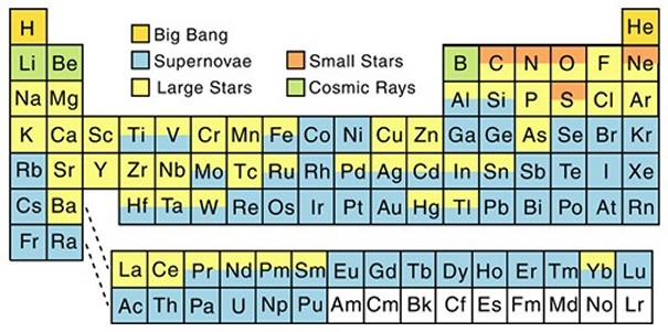 Το σύμπαν περιέχει όλη την ενέργεια και την ύλη που υπάρχει. Μεγάλο μέρος της παρατηρήσιμης ύλης στο σύμπαν παίρνει τη μορφή μεμονωμένων ατόμων υδρογόνου, το οποίο είναι το απλούστερο ατομικό στοιχείο, φτιαγμένο μόνο από ένα πρωτόνιο και ένα ηλεκτρόνιο (αν το άτομο περιέχει επίσης ένα νετρόνιο, ονομάζεται δευτέριο). Δύο ή περισσότερα άτομα που μοιράζονται ηλεκτρόνια σχηματίζουν ένα μόριο. Πολλά τρισεκατομμύρια άτομα μαζί αποτελούν ένα σωματίδιο σκόνης. Συμπιέστε μερικούς τόνους άνθρακα, πυριτίου, οξυγόνου, πάγου και λίγων μετάλλων, και έχετε έναν αστεροειδή. Ή συλλέξτε 333.000 μάζες της Γης σε υδρογόνο και ήλιο και έχετε ένα αστέρι σαν τον Ήλιο.